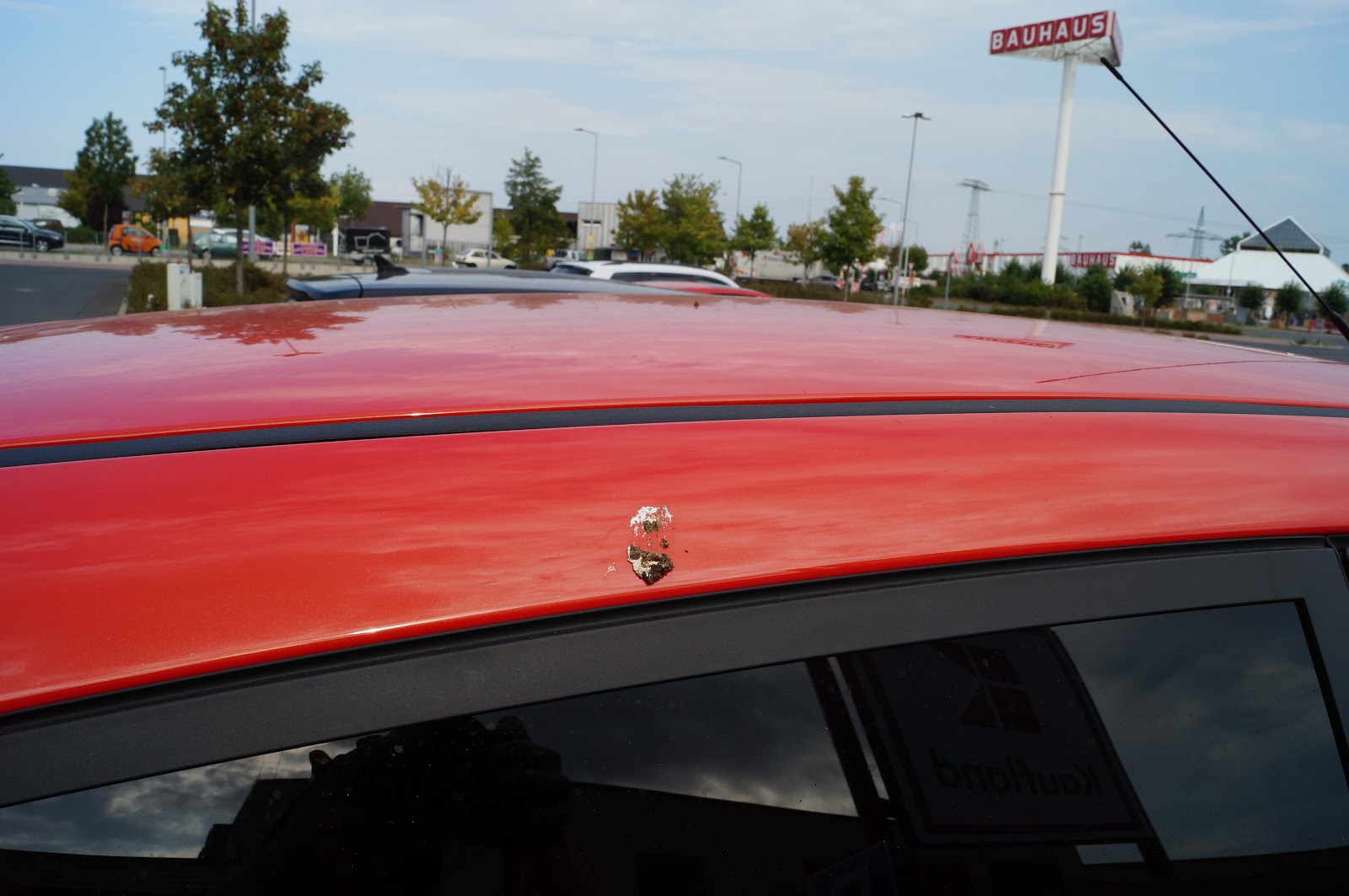 Benny muss schnell zur DEKRA den Vogelschiss eintragen lassen